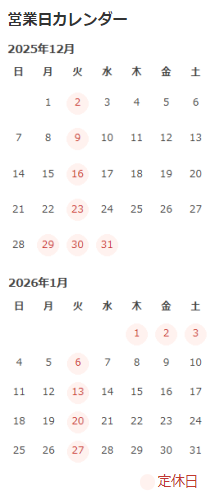 定休日:火曜日