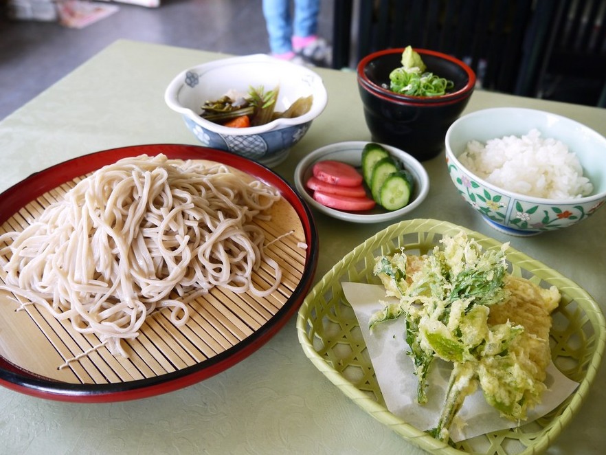 もりそばセット (そば、野菜天ぷら、中鉢、漬物、小ライス) |